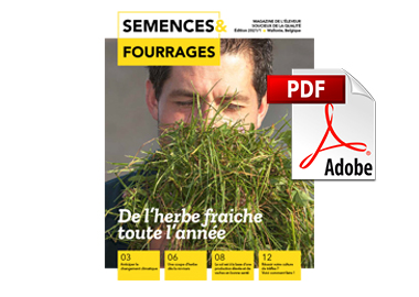 Vous ne disposez pas du Semences & Fourrages ? Vous voulez relire un article d’une édition précédente ? Téléchargez les dernières éditions du Semences & Fourrages. A travers ce magazine, les spécialistes graminées de Barenbrug partagent leurs connaissances et leur vision en matière de cultures fourragères. Le parcourir vous permet d’être up-to-date et de produire les meilleurs fourrages dont vous aurez besoin demain.