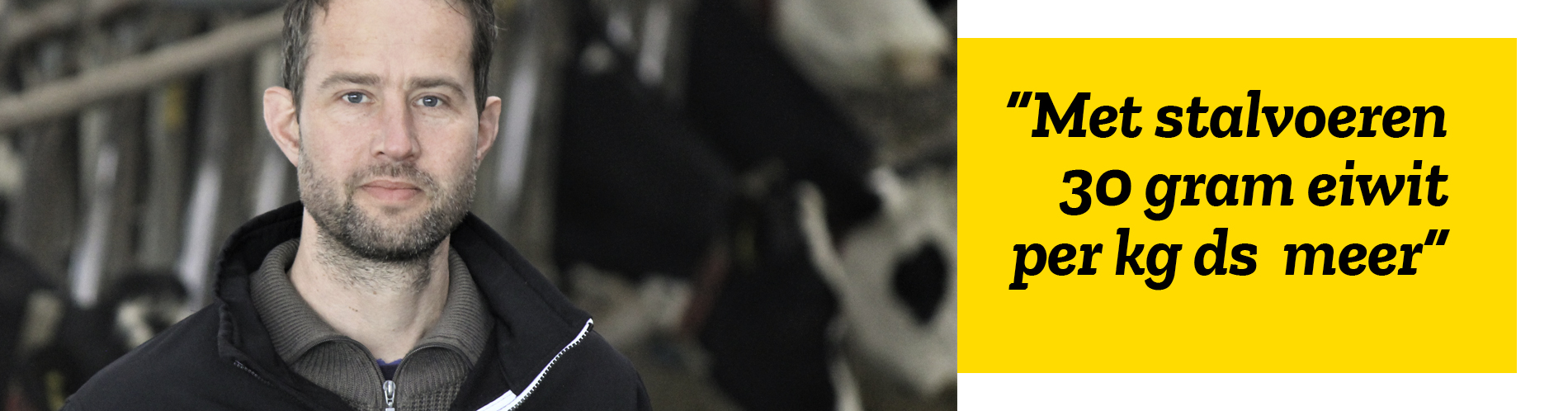 Zoveel mogelijk eiwit van eigen bodem. Dat wil toch iedereen? Melkveehouder Marcel Grondman uit Witharen (Ov.) lukt het om 1.000 euro krachtvoer per week te besparen! Zijn 220 koeien voert hij met stalvoedering, die veel liever het verse gras eten dan kuilgras. Bovendien levert het meer droge stof op. Dat spaart krachtvoer uit.