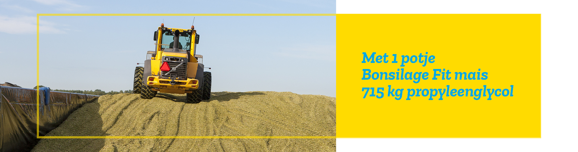 Wist je dat je met de specifieke bacteriën van het inkuilmiddel Bonsilage Fit mais de melkzuur in je maiskuil kunt omzetten naar de gezonde energie booster propyleenglycol? Door deze makkelijk opneembare energie bevorder je een optimale penswerking en neemt de kans op slepende melkziekte en pensverzuring af.